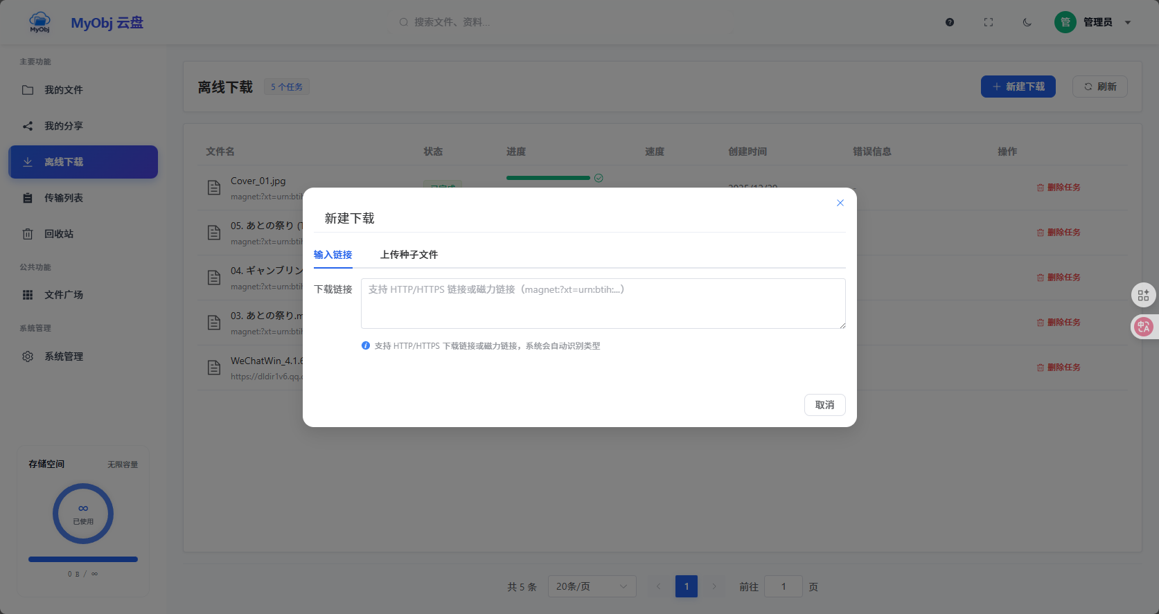 目前MyObj 支持两种离线下载方式:HTTP/HTTPS 下载和种子下载。